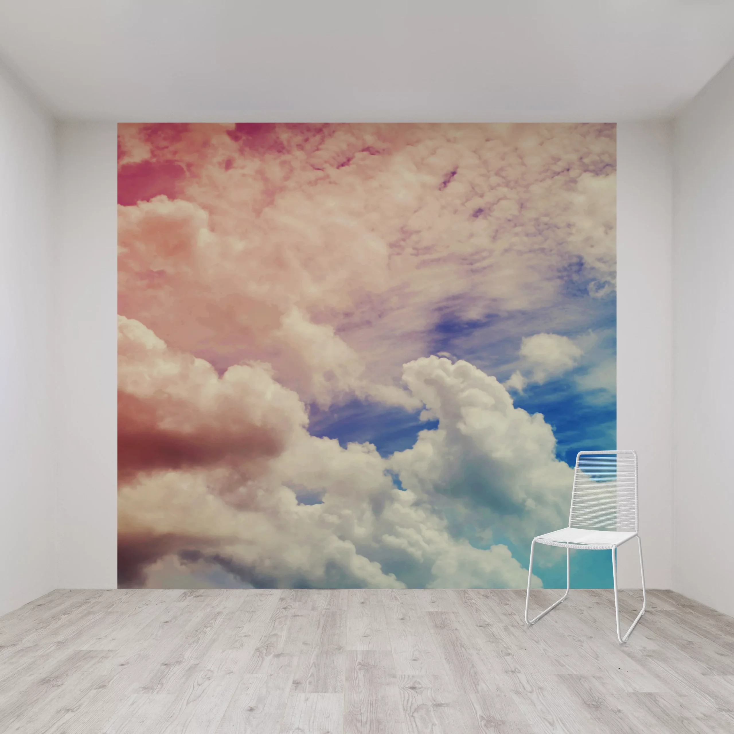 Dream sweet dreams inspired by this beautiful photographic ombre cloud mural design. The mural measures 300cm wide by 280cm tall. It comes in one easy to use roll (1 roll = 1 mural) and is supplied with a set of easy to follow hanging instructions. In order to remove, it simply peels off in one strip and no steamer or scraper is required.