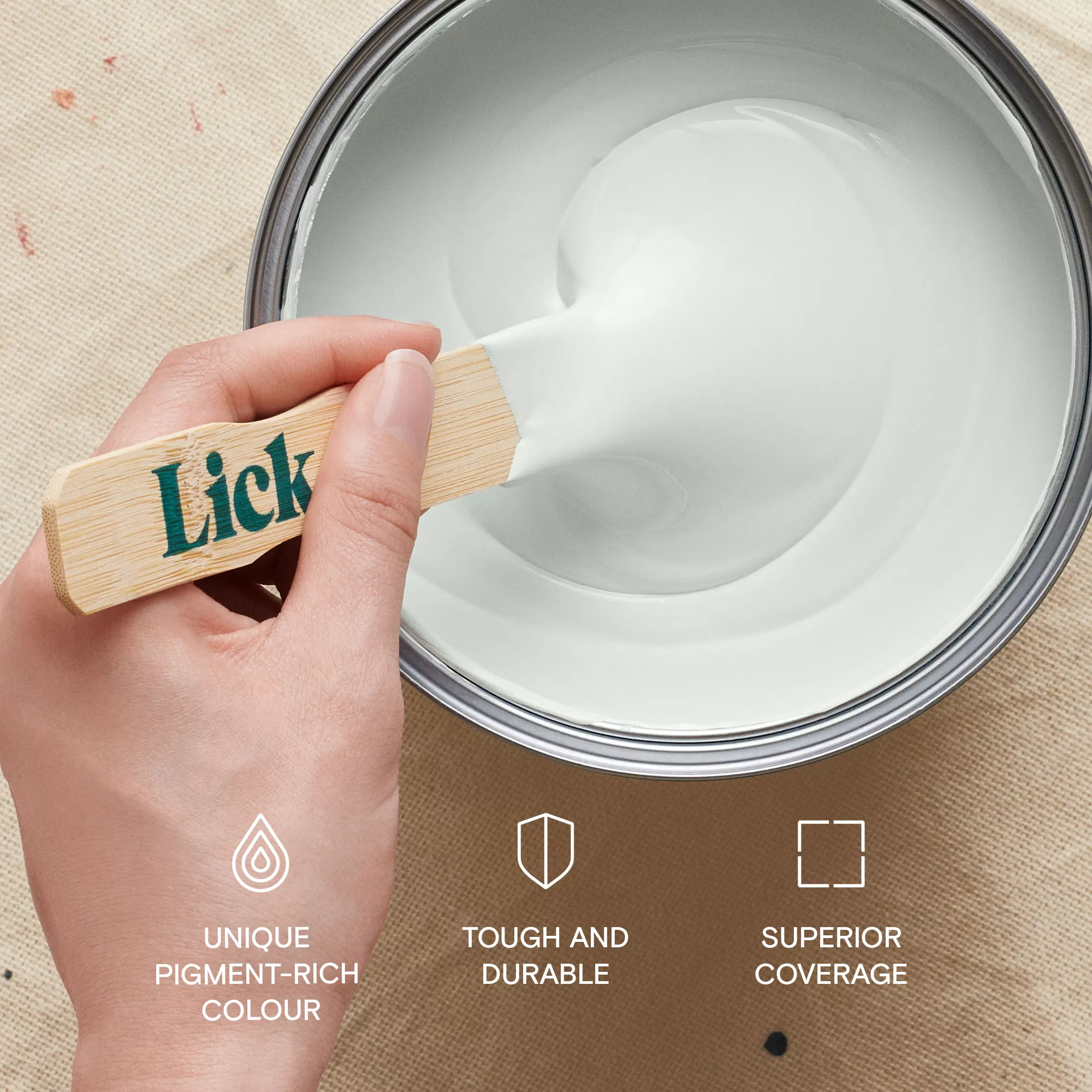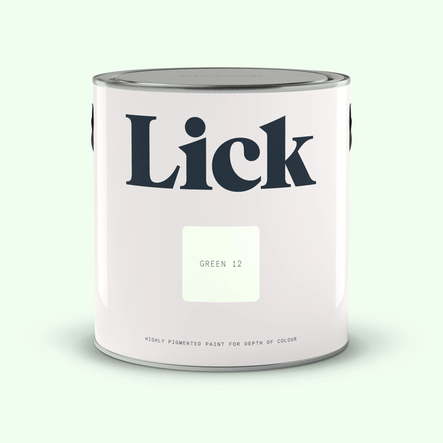Lick hand-pick the finest pigments for their signature depth of colour and superior coverage. This high-quality formulation is designed to cover up imperfections with a uniform, flawless finish. Like a breath of fresh garden air, feel rejuvenated with Green 12 and recharge the mind. A pale green, balanced with white and yellow undertones. Lick’s mid-sheen eggshell finish is satin-smooth. A hard-wearing, wipeable and high-pigment finish to weather scuffs and scrapes for years to come. Super durable against steam, moisture and water. You can cover 10m² – 13m² per litre, and Lick recommends you apply two coats for maximum long-term durability – just make sure your surfaces are clean and dry before you start decorating.