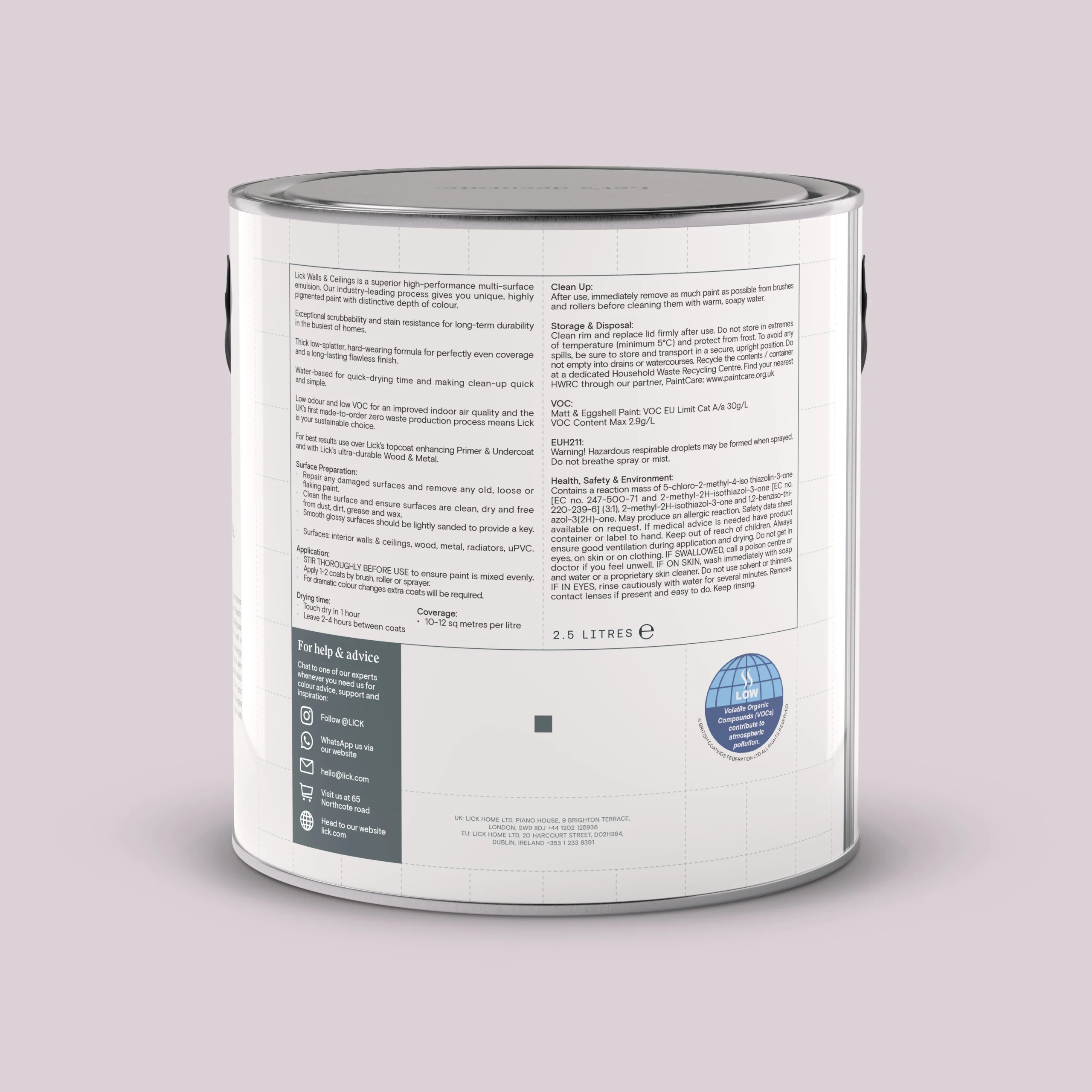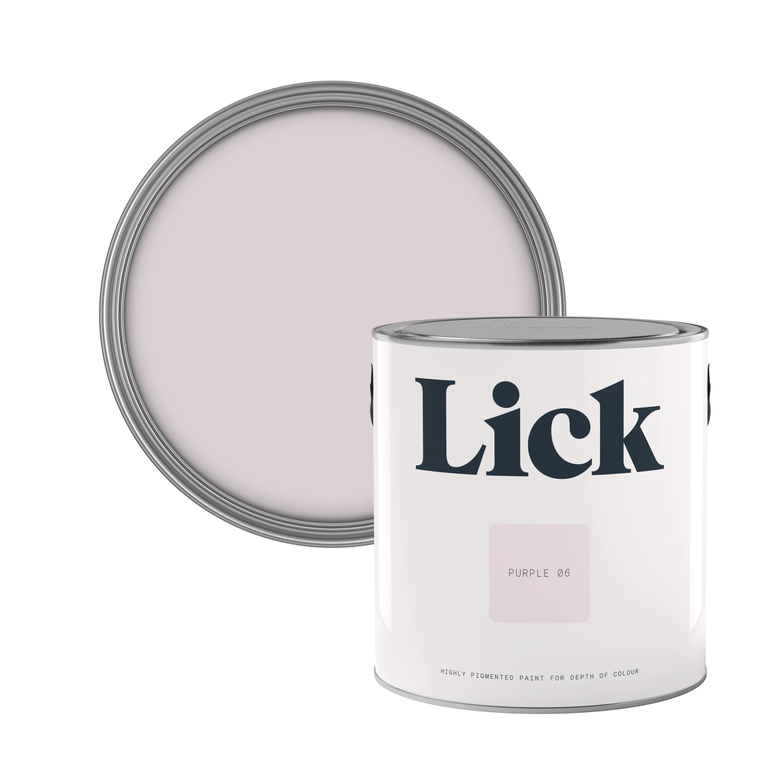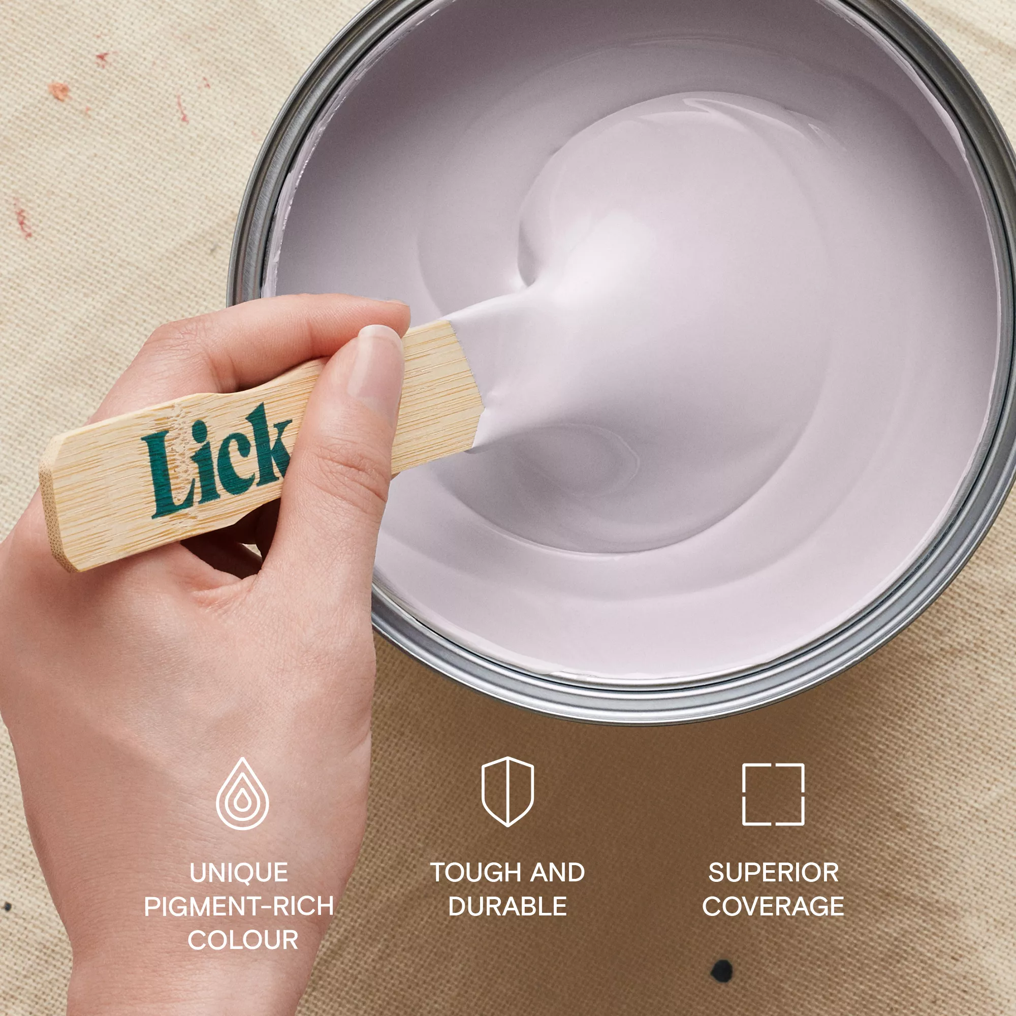 Lick hand-pick the finest pigments for their signature depth of colour and superior coverage. This high-quality formulation is designed to cover up imperfections with a uniform, flawless finish. Feel soothed and supported with Purple 06, a calming, pale lilac with warm undertones of pink and grey that encourages creativity and contemplation. Lick’s mid-sheen eggshell finish is satin-smooth. A hard-wearing, wipeable and high-pigment finish to weather scuffs and scrapes for years to come. Super durable against steam, moisture and water. You can cover 10m² – 13m² per litre, and Lick recommends you apply two coats for maximum long-term durability – just make sure your surfaces are clean and dry before you start decorating.