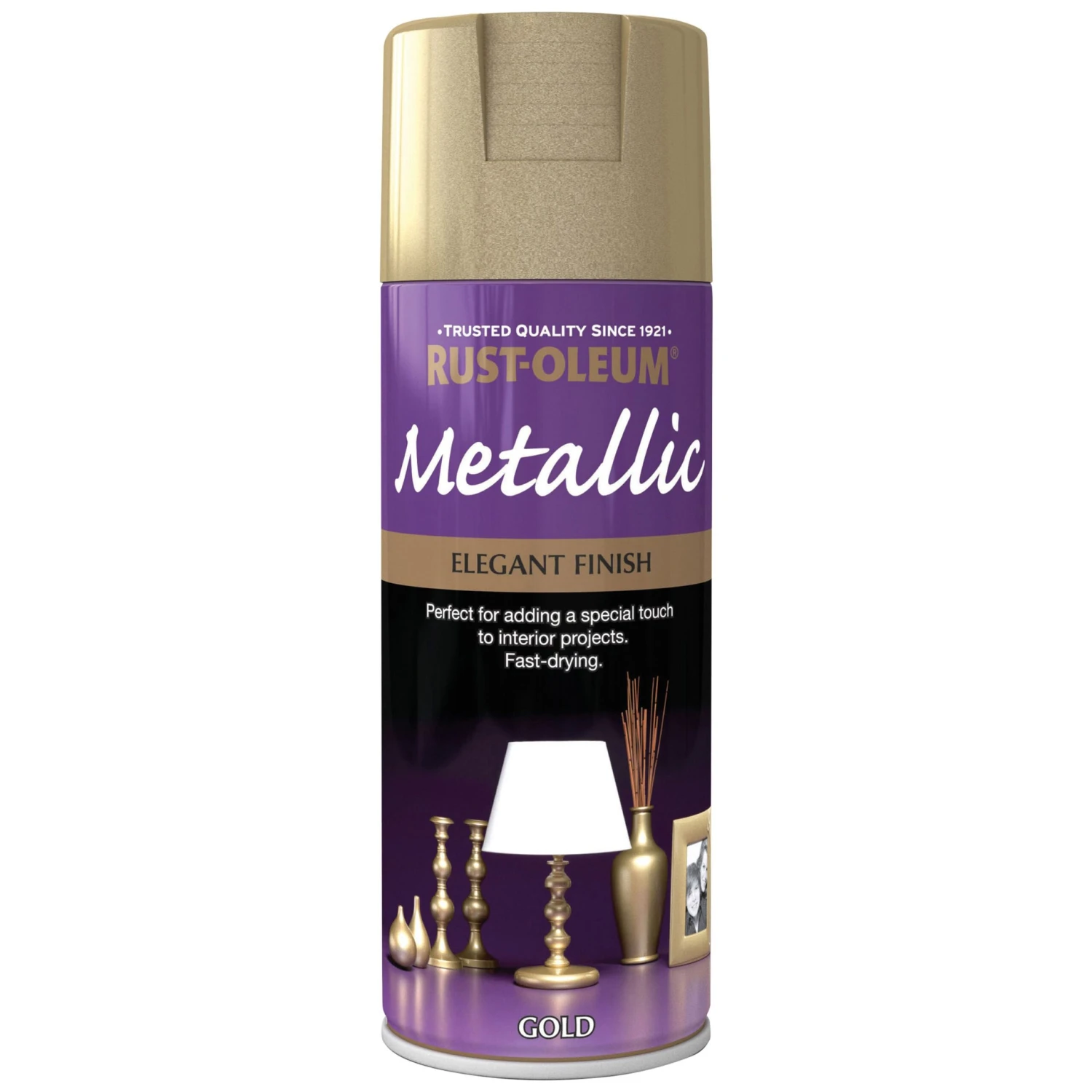 Ideal for multi surface, this Gold metallic spray paint from Rust-Oleum has been specially designed to give a stunning finish to around your home. Simply apply and leave for 24 hours to dry – a great way to revamp your home. Covers 2.5m² per litre on average.