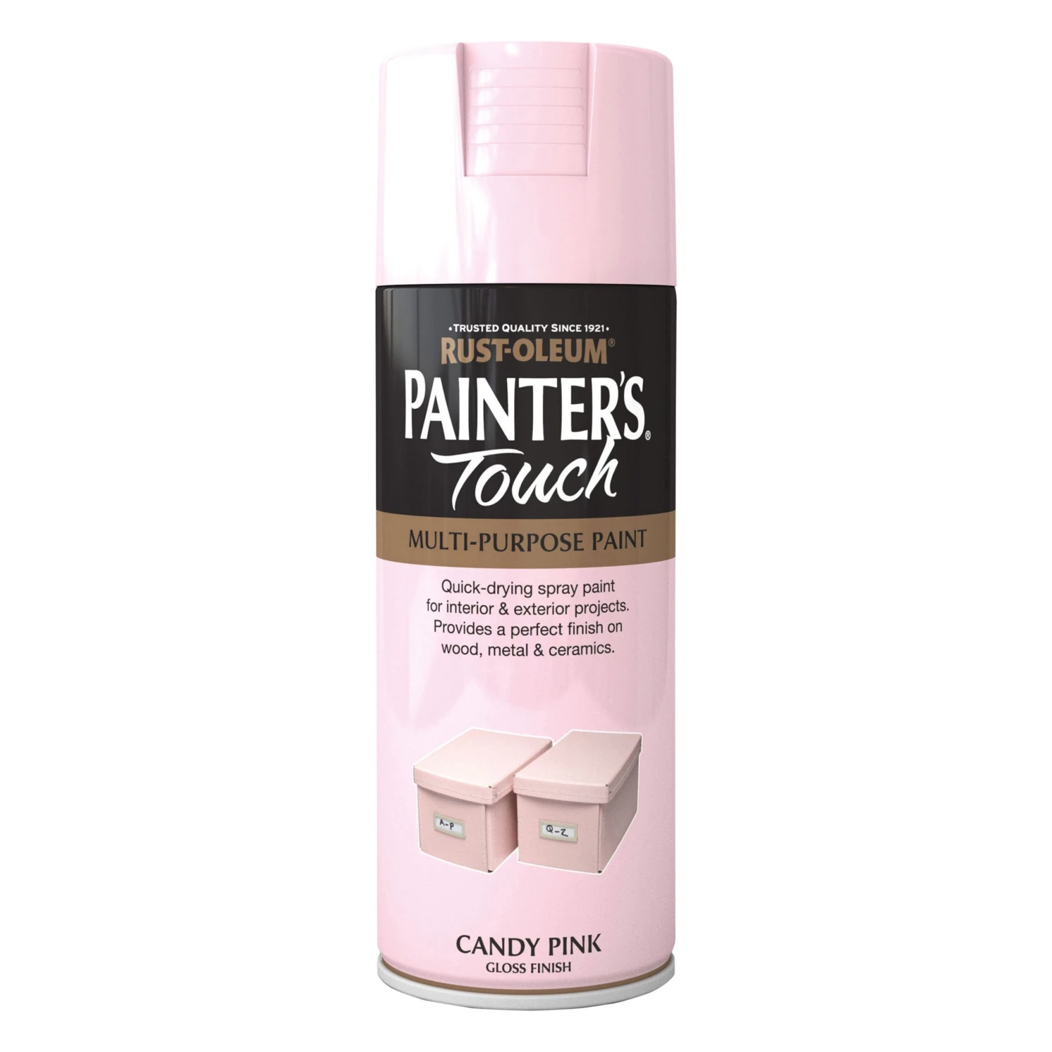 Ideal for multi surface, this Candy Pink gloss gloss decorative spray paint from the Painter’s touch range by Rust-Oleum has been specially designed to give a stunning finish to around your home. Simply apply and leave for 24 hours to dry – a great way to revamp your home. Covers 2m² per litre on average.