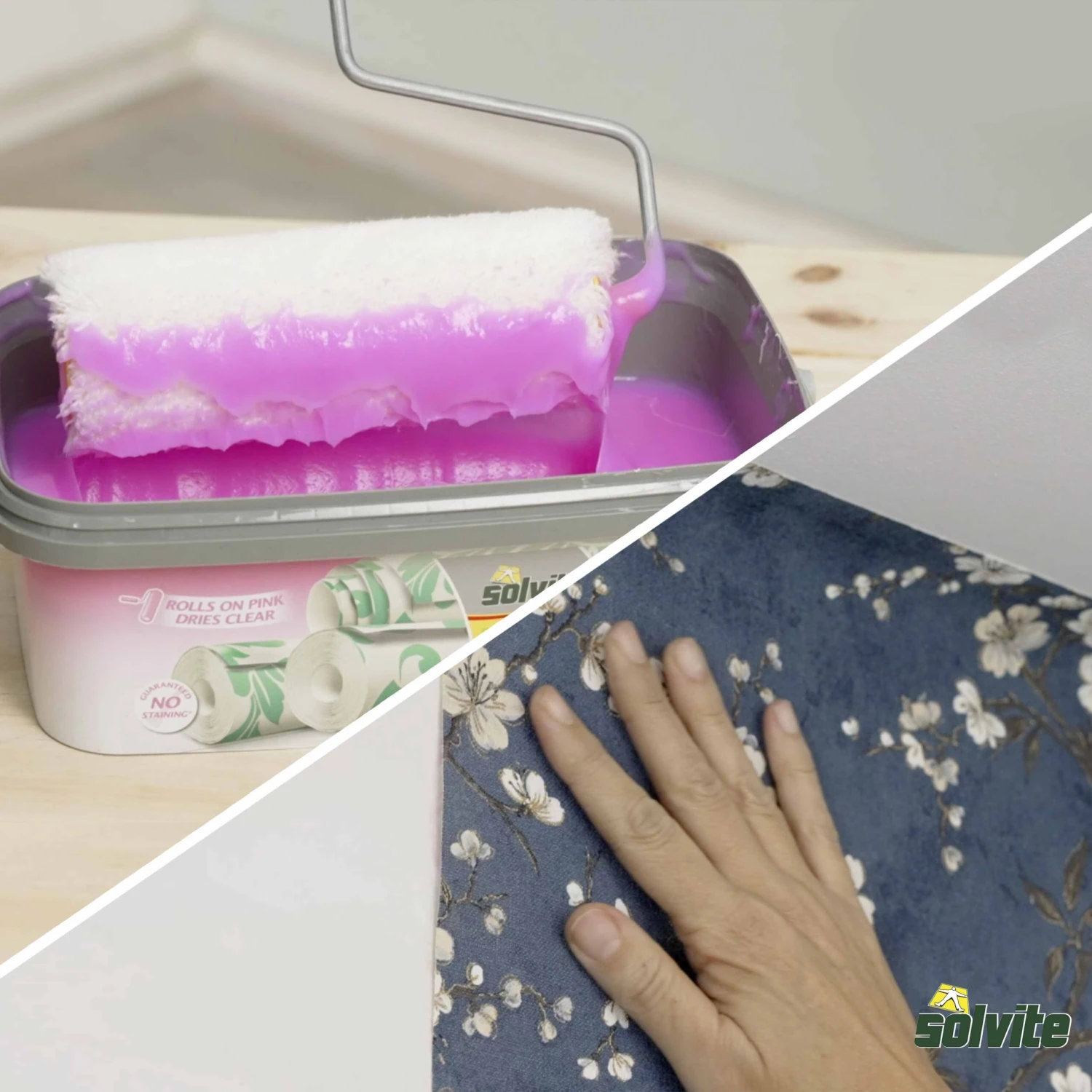 - Smooth, non-drip adhesive that rolls on pink but dries clear