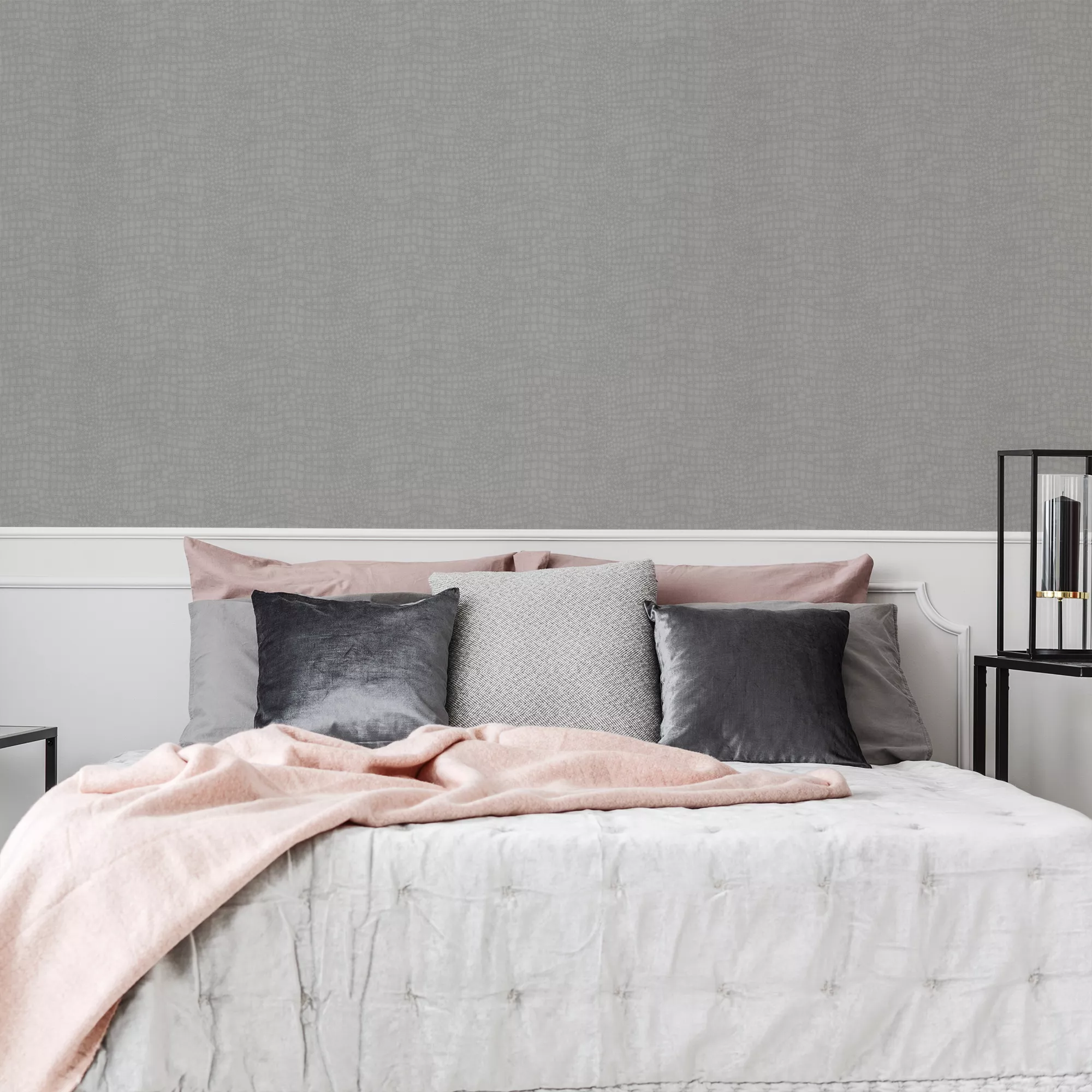 Create a dramatic look with this crocodile skin pattern wallpaper. This beautiful print features a textured faux crocodile skin motif running throughout the paper.  It’s a perfect choice of wallpaper to bring an element of glamour to your chosen room.